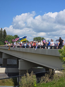 We will meet at the Oak Park Crossing Park parking lot and walk/march/roll to the nearby bridge over Highway 36.